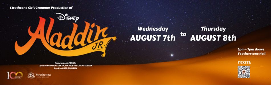 Strathcona's Middle School musical 'Disney's Aladdin Jr' - Join us on a journey through the bustling streets of Agrabah, where the beloved tale of a kind-hearted street rat, a spirited princess, and a magical genie unfolds. Experience the magic as our talented cast transports you to a world of wonder.
