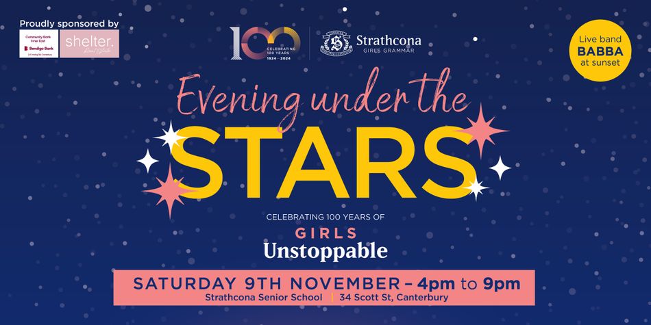 Join Strathcona Girls Grammar in celebrating 100 years of Girls Unstoppable on Saturday 9 November from 4.00pm - 9.00pm for our Evening Under the Stars!